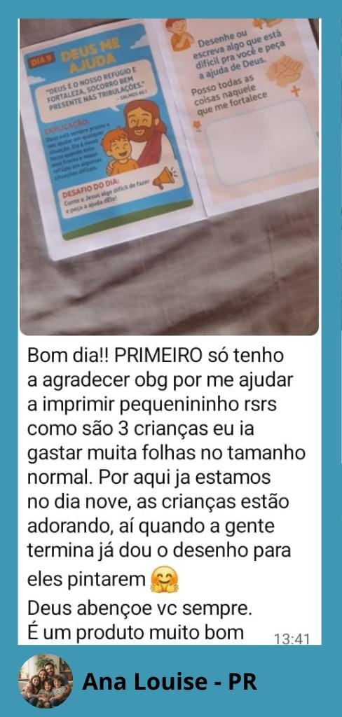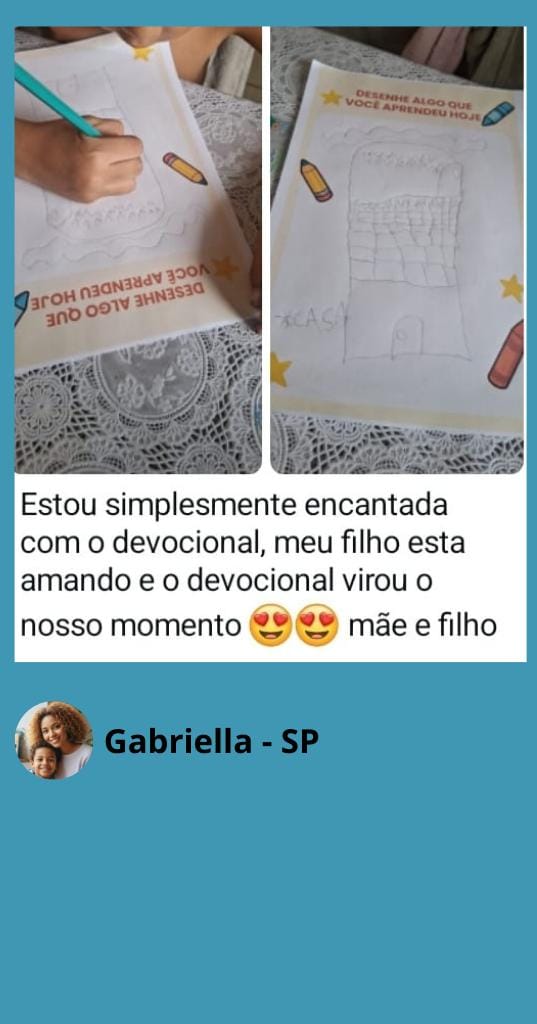 Para celebrar cada passo dado ao longo dos 30 dias, seu filho receberá um certificado exclusivo e super colorido ao final do devocional!