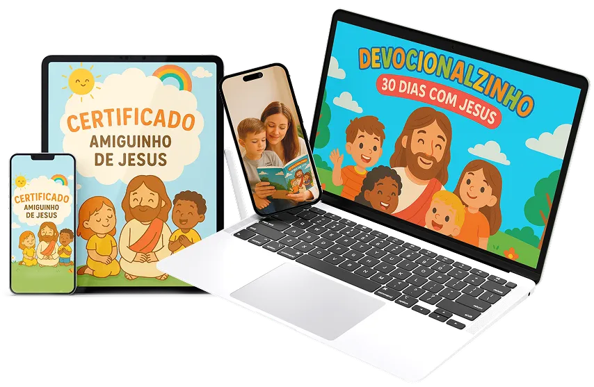 Mais de 30 dias de atividades, versículos, desafios e reflexões para ajudar seu filho a conhecer Jesus de forma leve, divertida e inesquecível — mesmo com a correria do dia a dia!